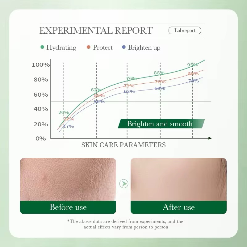Water, Glycerin, Propylene Glycol, Glycerol Polyether-26, Phenoxyethanol, Methyl Hydroxybenzene, Carbomer, Triethanolamine, Hydroxyethyl Cellulose, Peg-40 Hydrogenated Castor Oil Other Trace Ingredients: Octyl Hyaluronic Acid, Essence, Sodium Hyaluronate, Glycerol Octanoate, Centella Asiatica Extract