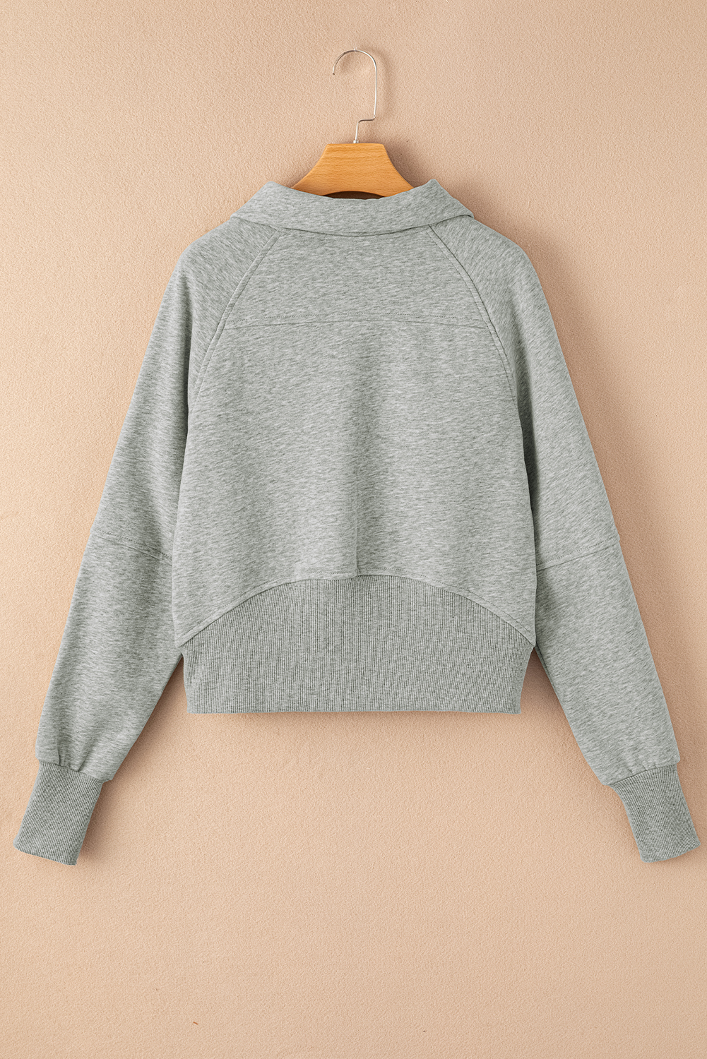 Gray Fleece Lined Zip Up Stand Collar Thumbhole Sleeve Sweatshirt