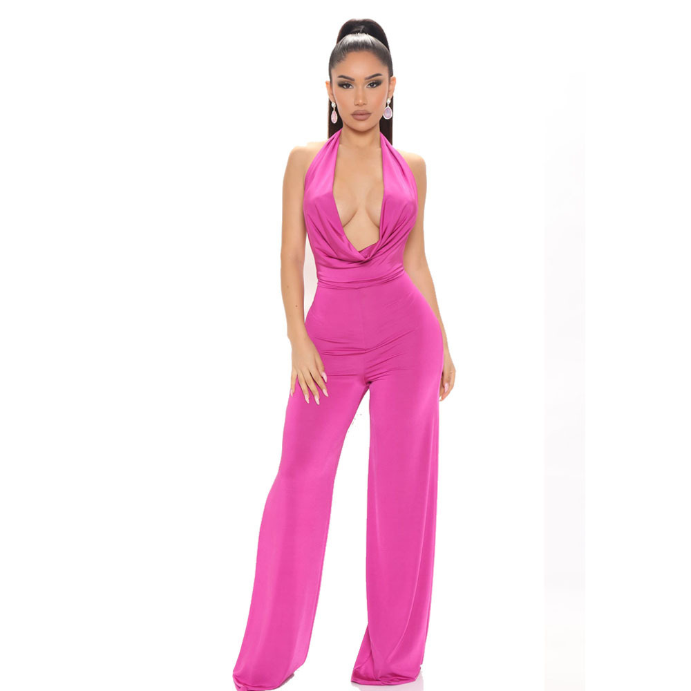 Step into elegance with this cowl halter mesh deep V plunge jumpsuit. Featuring a daring neckline, chic backless cut, and flowing wide leg pants, this jumpsuit blends sophistication with bold style. The breathable mesh fabric and flattering waist detail create a stunning silhouette that’s ideal for evening parties, club nights, or special events. Pair it with heels and statement jewelry to complete the look.